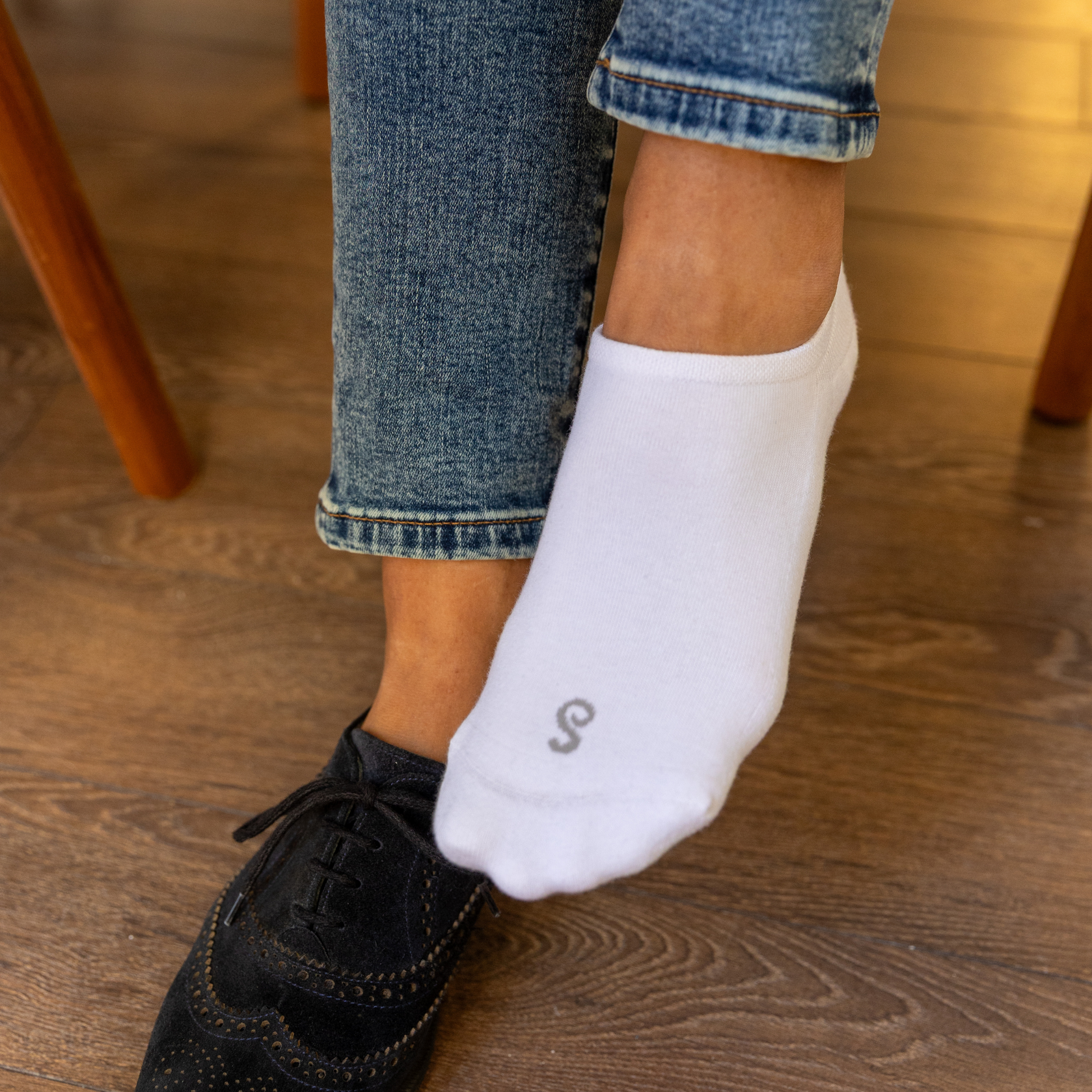 Organic Cotton No-Show Socks - White - 4 Pairs